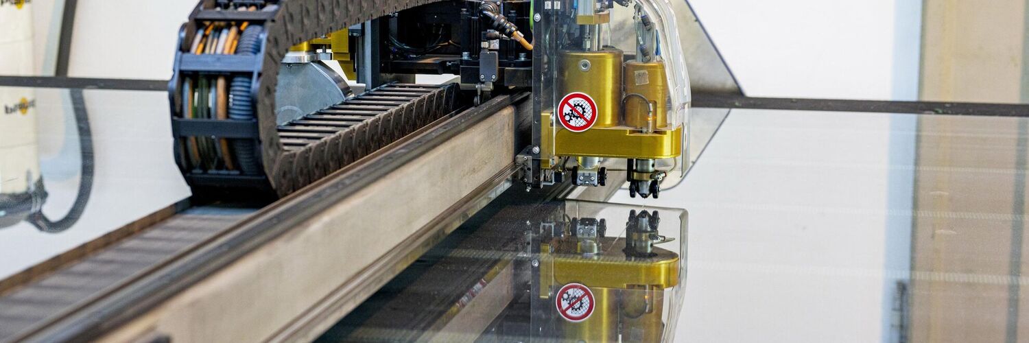 Il taglio dei vetri stratificati viene fatto grazie a una macchina a controllo numerico in grado di eseguire tagli anche su lastre di grandi dimensioni.